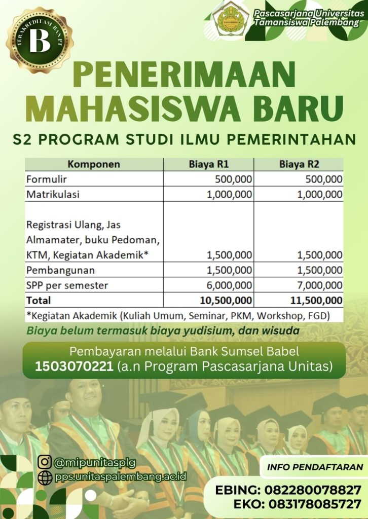 Magister Ilmu Pemerintahan Universitas Tamansiswa Palembang merupakan Program Studi berakreditasi B di Kota Palembang.
